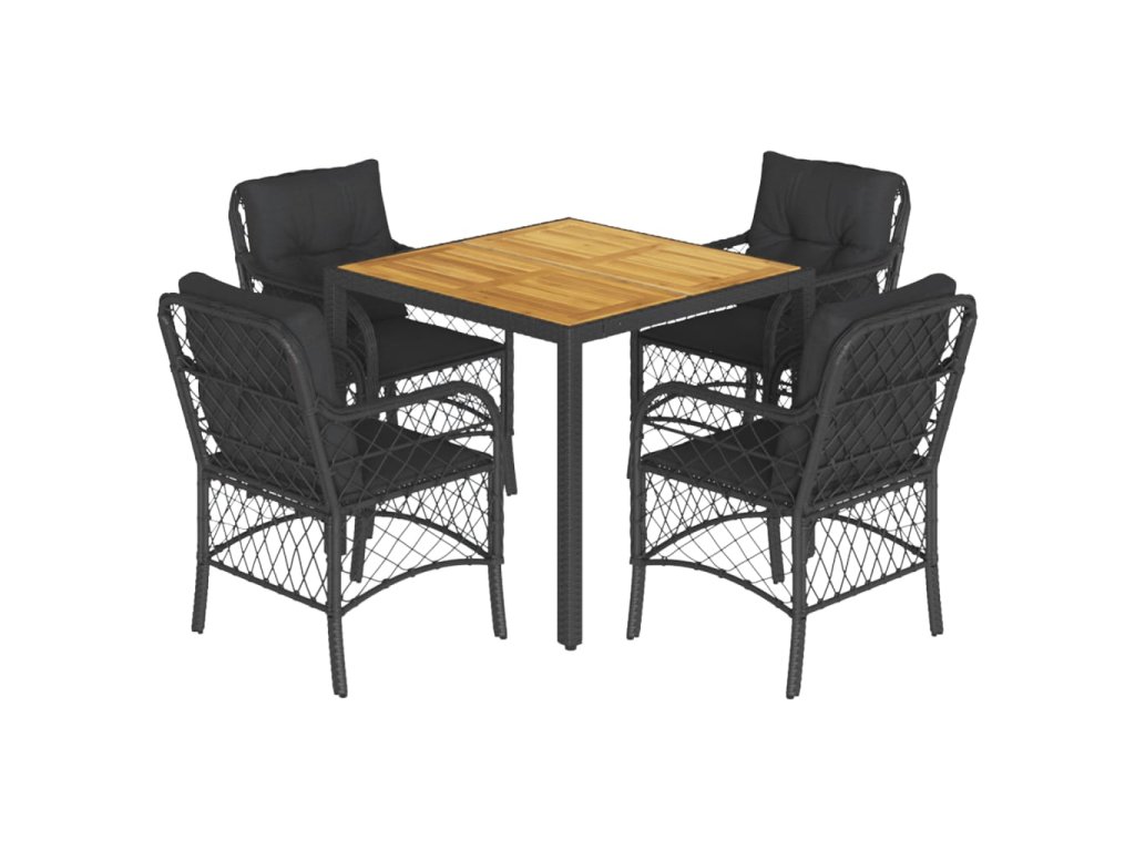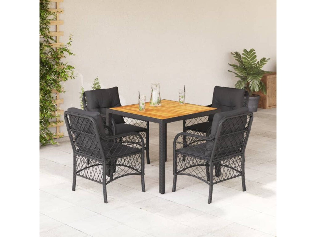 5dílný zahradní jídelní set s poduškami černý polyratan 3212043