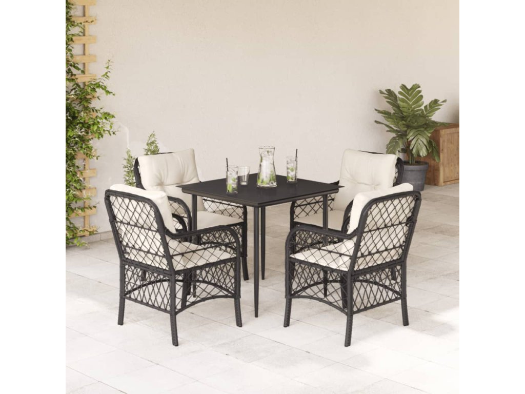 5dílný zahradní jídelní set s poduškami černý polyratan 3212083