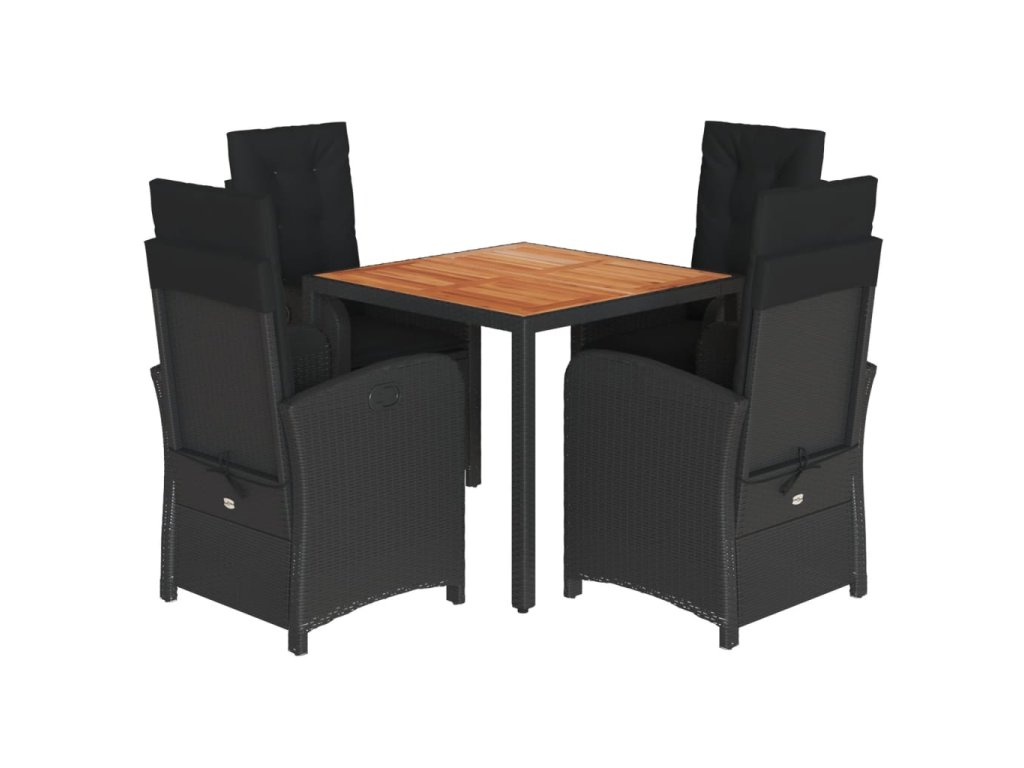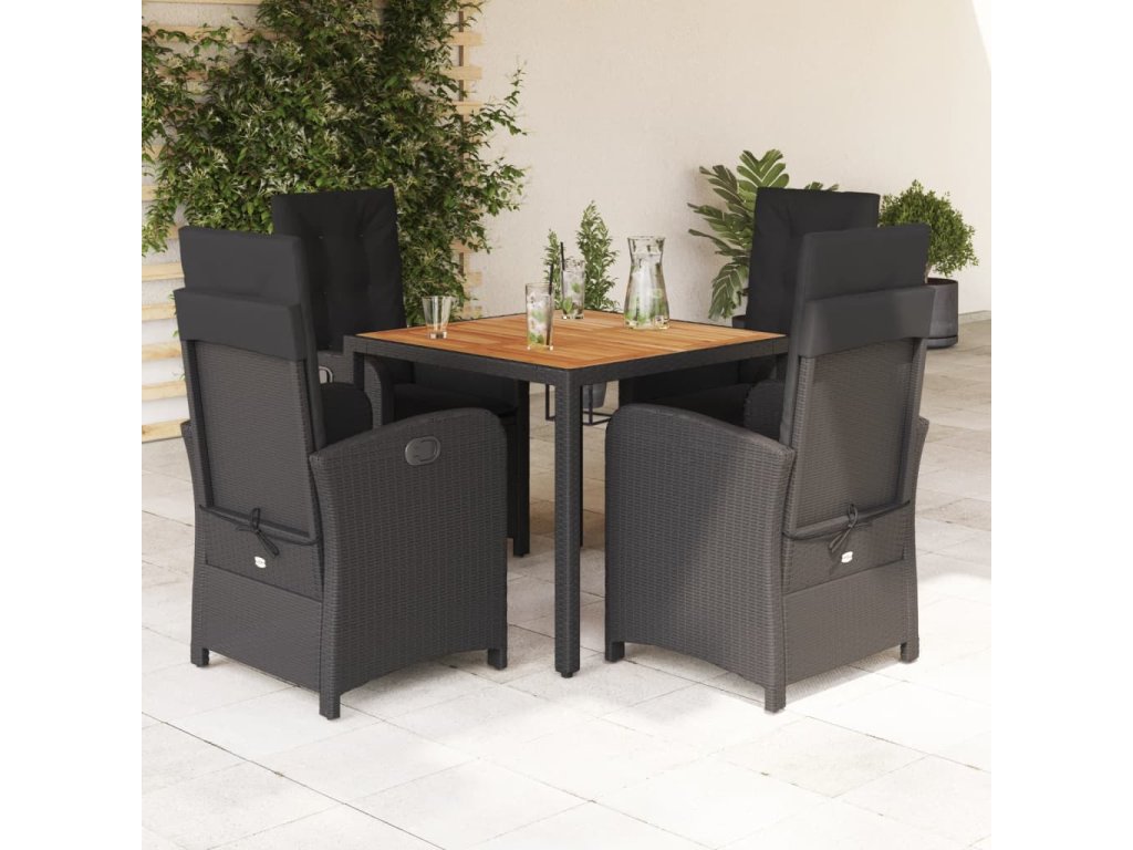 5dílný zahradní jídelní set s poduškami černý polyratan 3212232