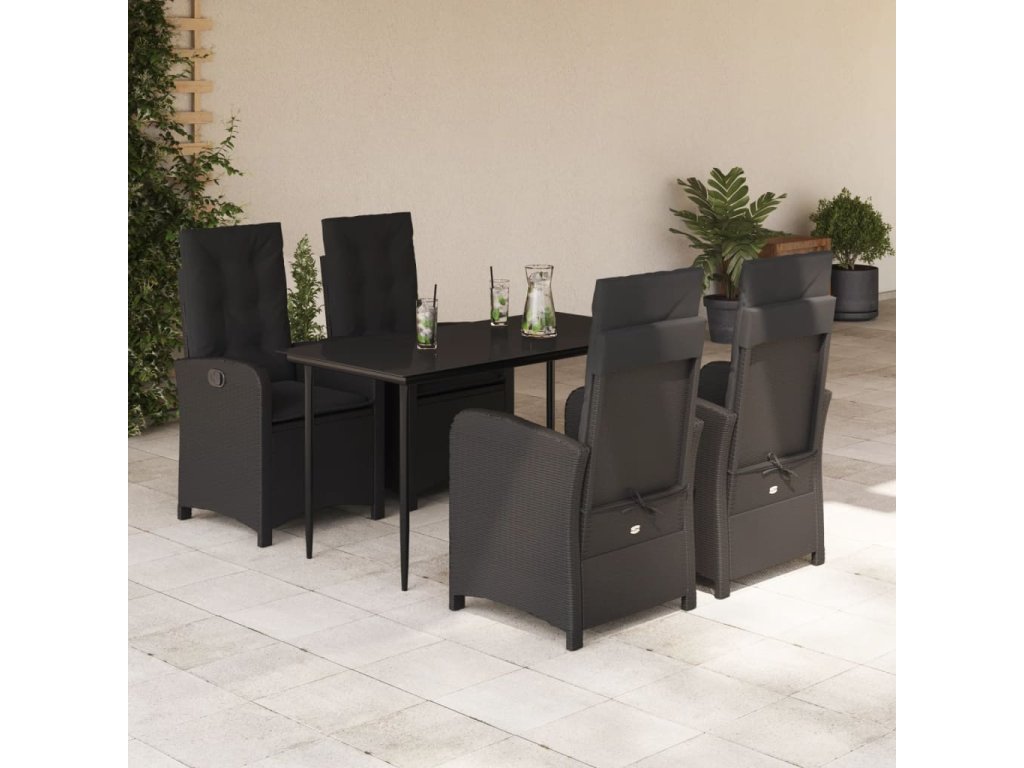 5dílný zahradní jídelní set s poduškami černý polyratan 3212313