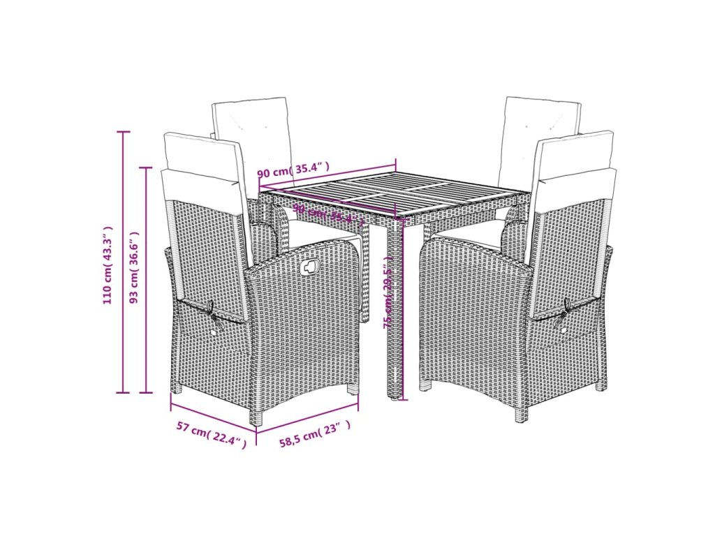 5dílný zahradní jídelní set s poduškami černý polyratan 3212475