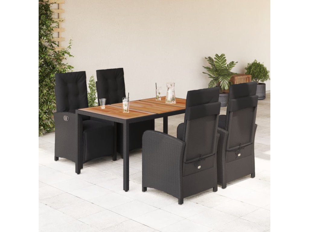 5dílný zahradní jídelní set s poduškami černý polyratan 3212476