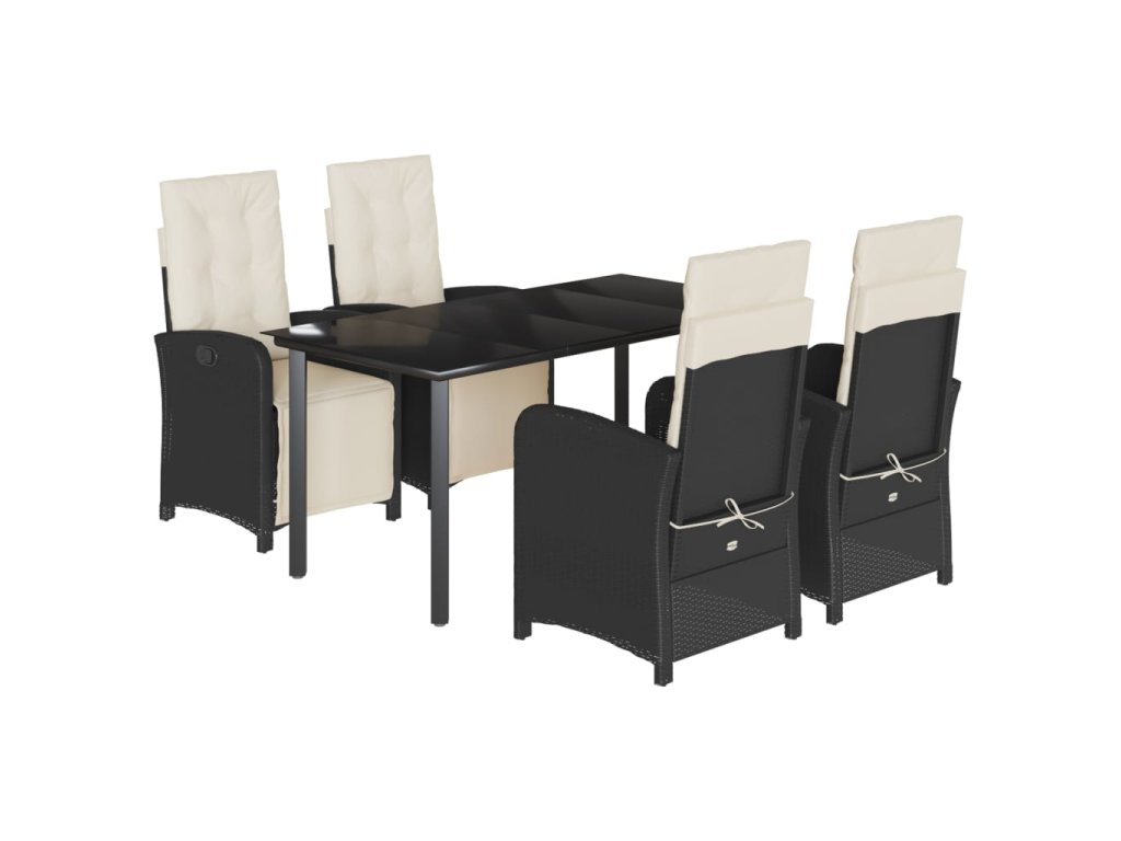 5dílný zahradní jídelní set s poduškami černý polyratan 3212524
