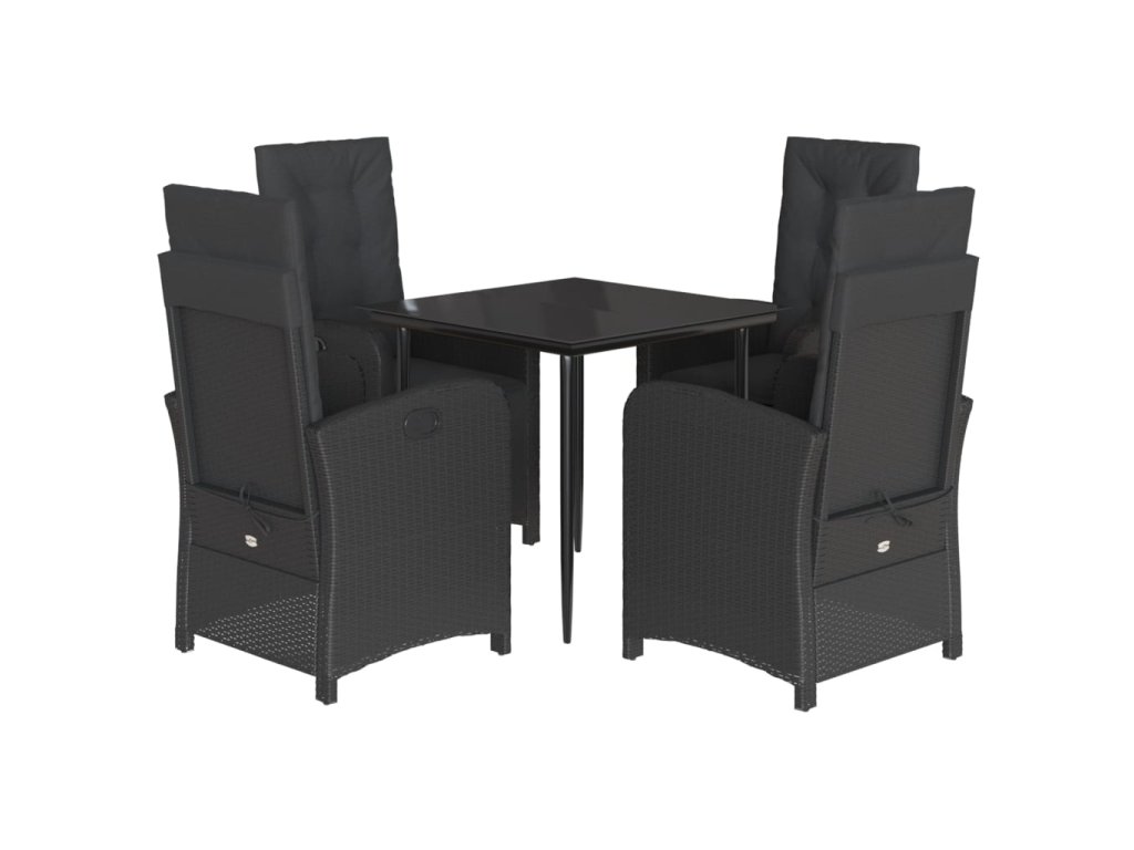 5dílný zahradní jídelní set s poduškami černý polyratan 3212529