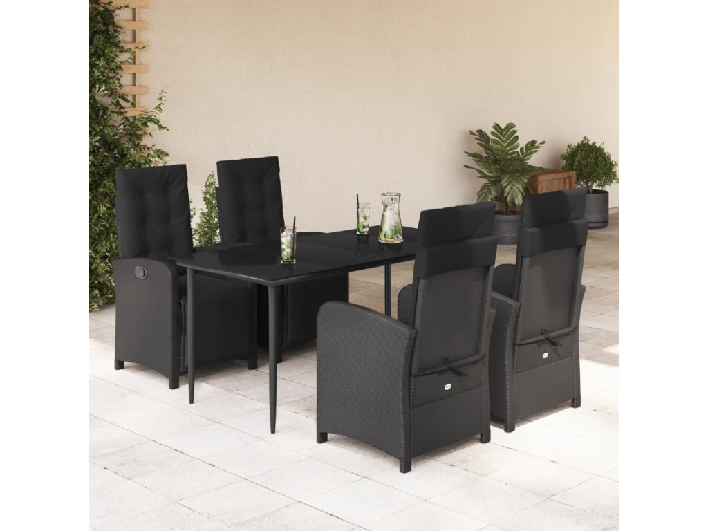 5dílný zahradní jídelní set s poduškami černý polyratan 3212531