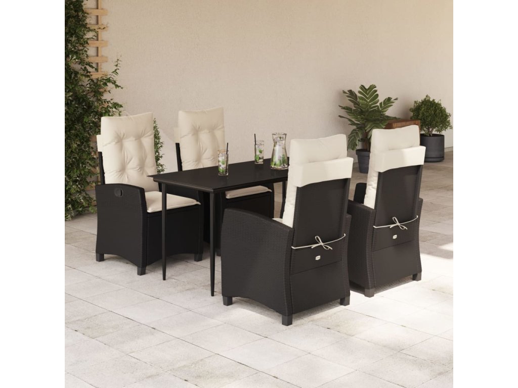 5dílný zahradní jídelní set s poduškami černý polyratan 3212725