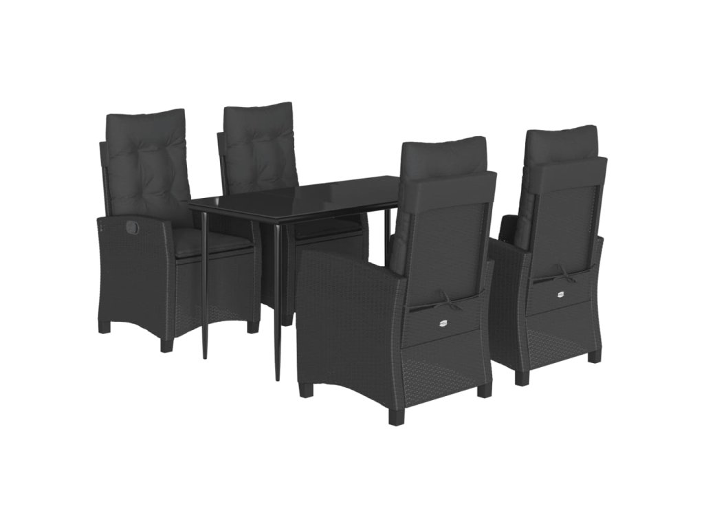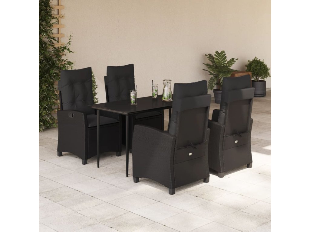 5dílný zahradní jídelní set s poduškami černý polyratan 3212745