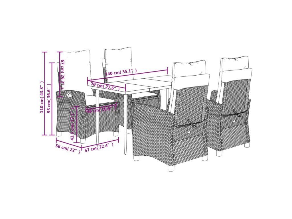 - Rozměry při poloze vsedě: 57 x 66 x 93 cm (Š x H x V)