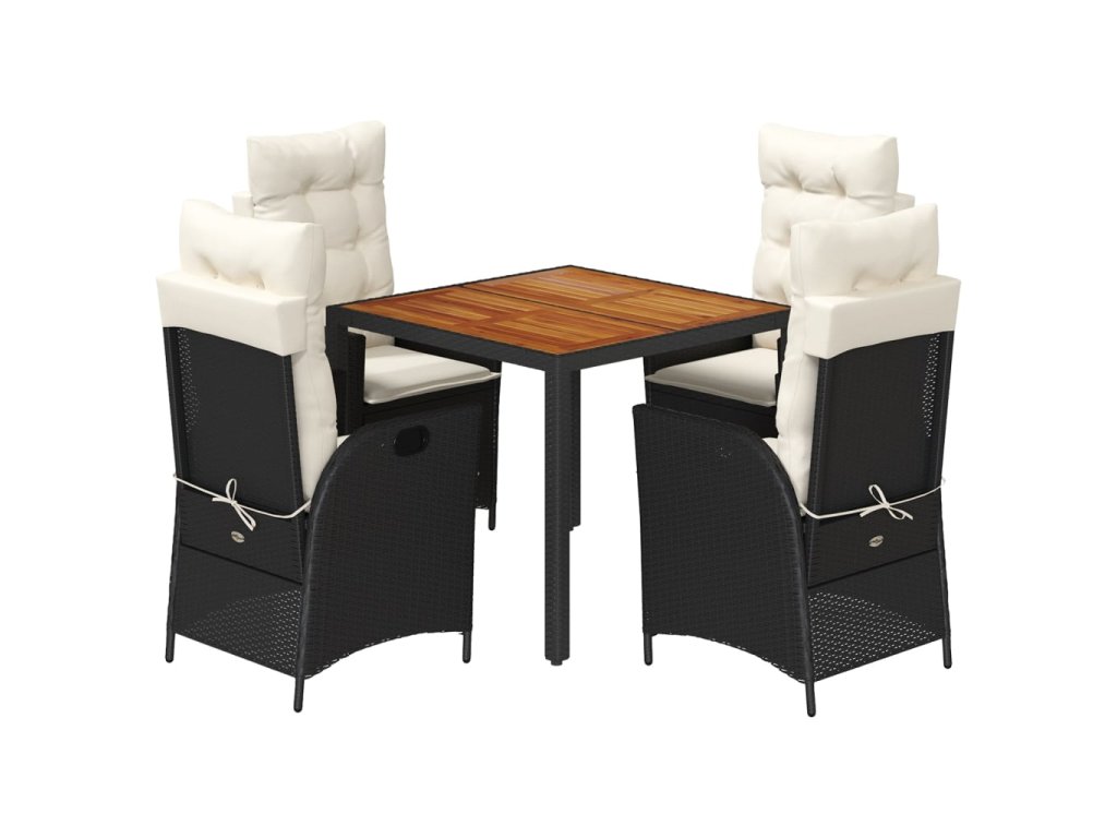 5dílný zahradní jídelní set s poduškami černý polyratan 3213086