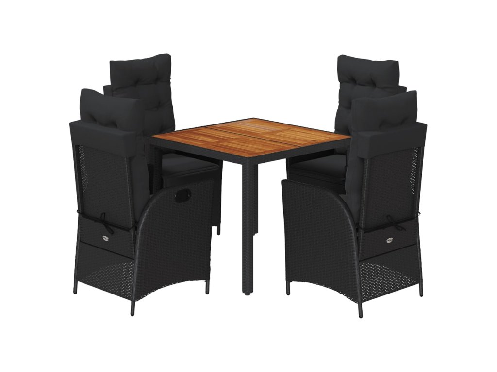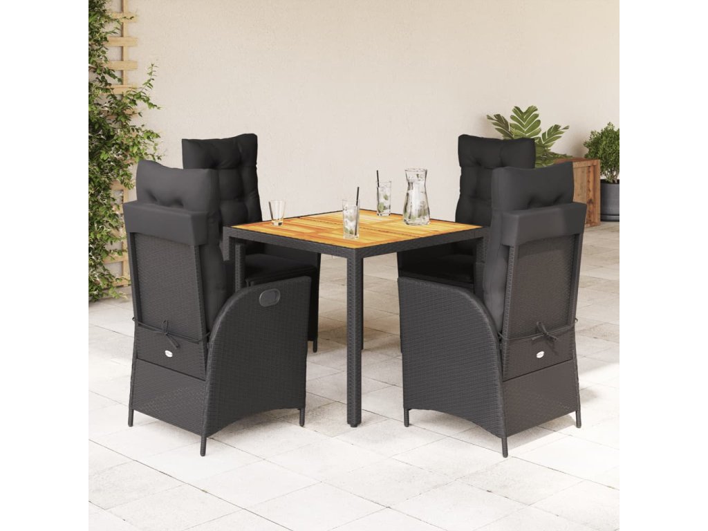 5dílný zahradní jídelní set s poduškami černý polyratan 3213096