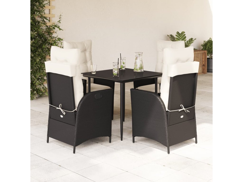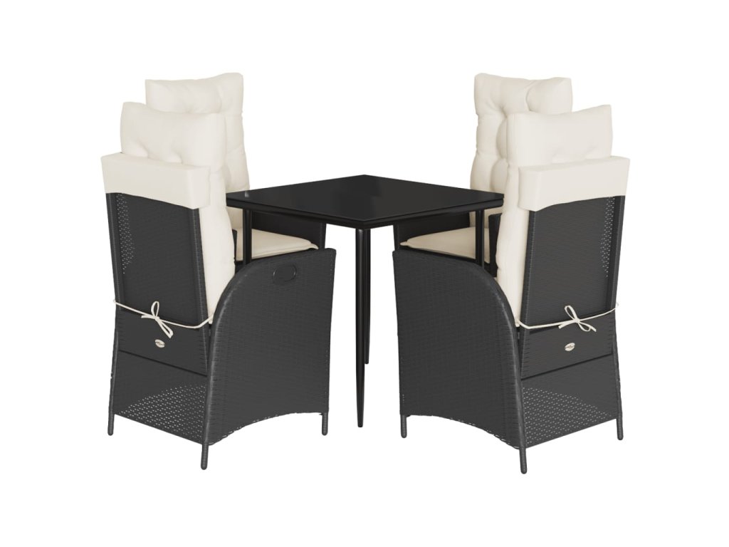 5dílný zahradní jídelní set s poduškami černý polyratan 3213155