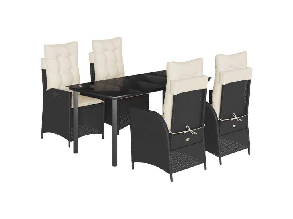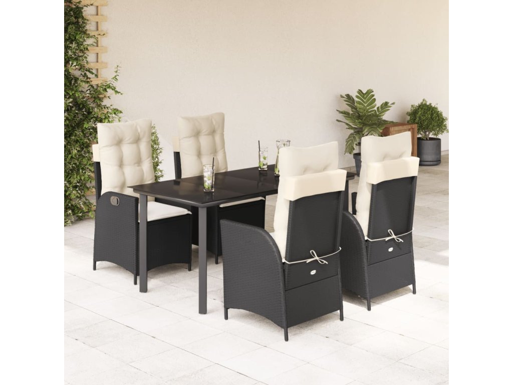 5dílný zahradní jídelní set s poduškami černý polyratan 3213168