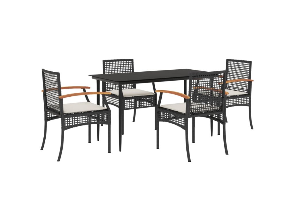 5dílný zahradní jídelní set s poduškami černý polyratan 3213598