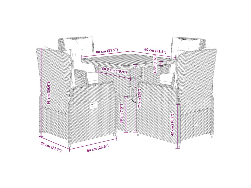 - Rozměry: 80 x 80 x 40/71 cm (D x Š x V)