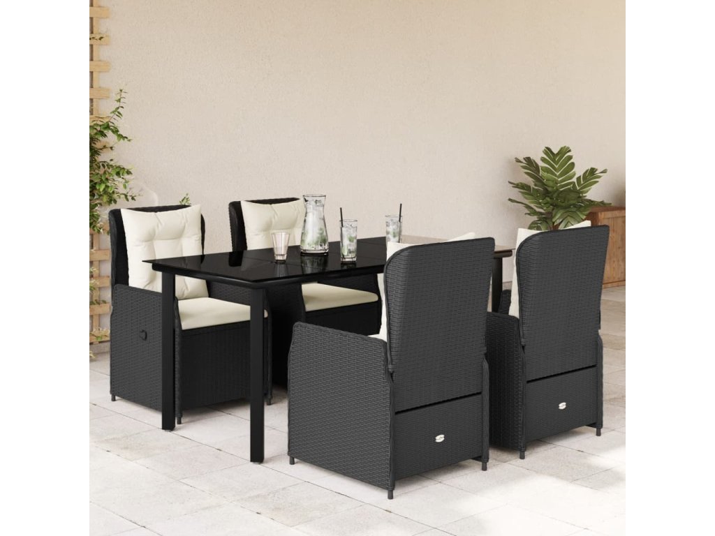 5dílný zahradní jídelní set s poduškami černý polyratan 3262836