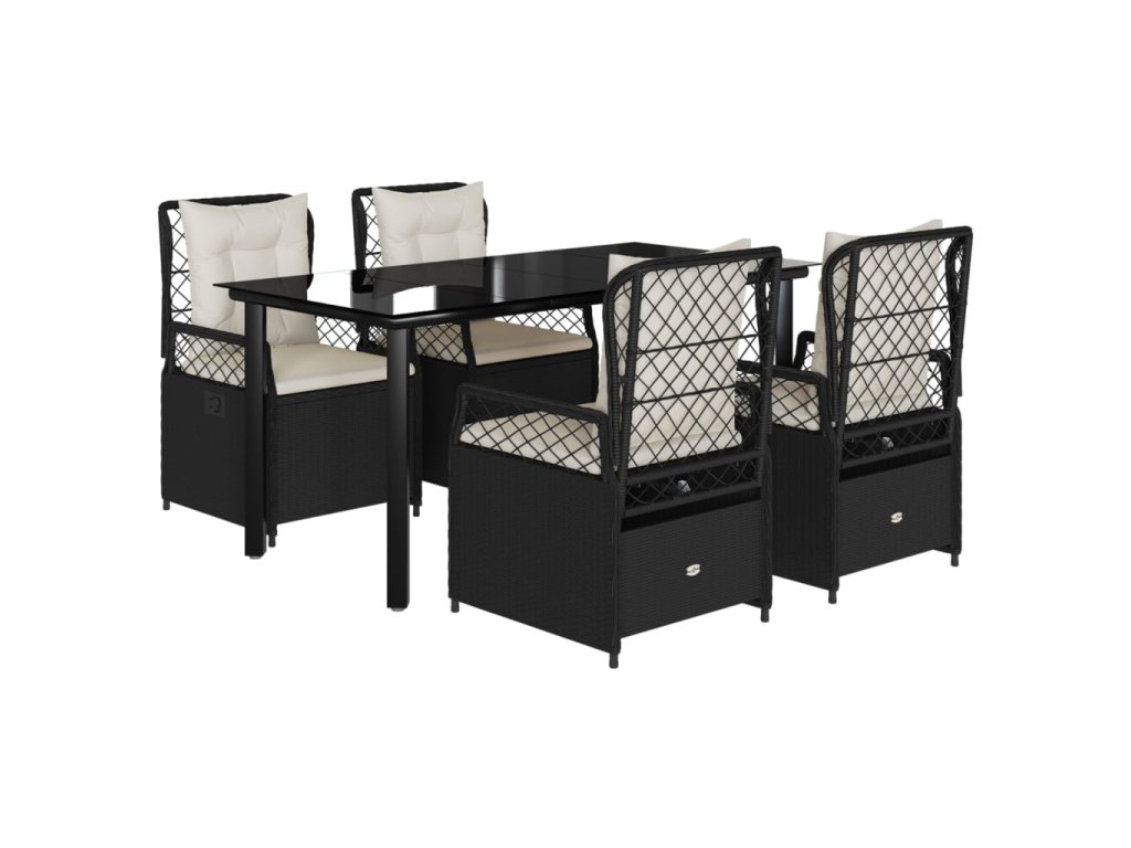 5dílný zahradní jídelní set s poduškami černý polyratan 3262967