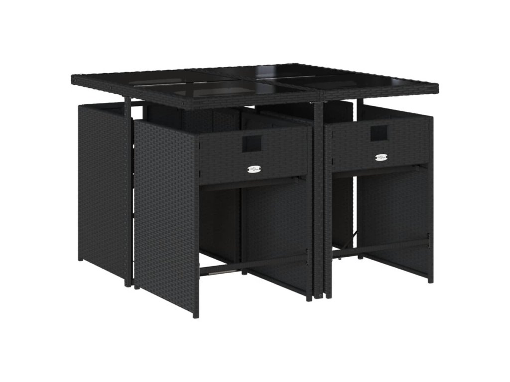 5dílný zahradní jídelní set s poduškami černý polyratan 3277842