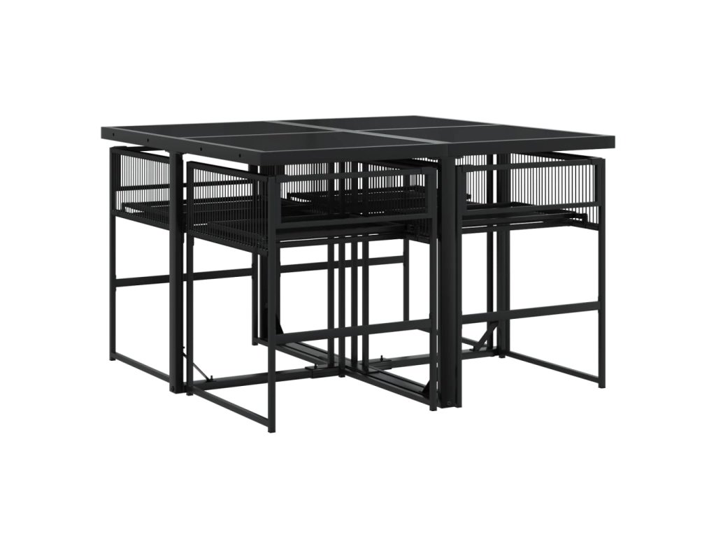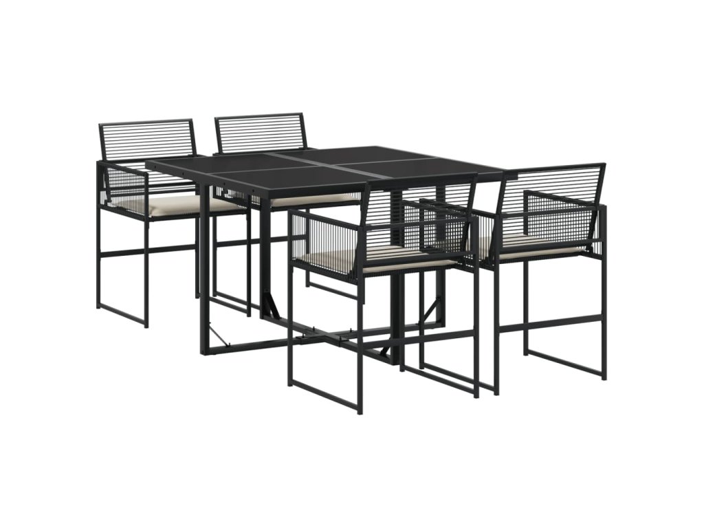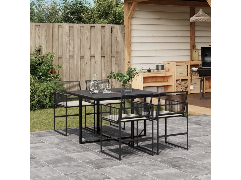 5dílný zahradní jídelní set s poduškami černý polyratan 3295008