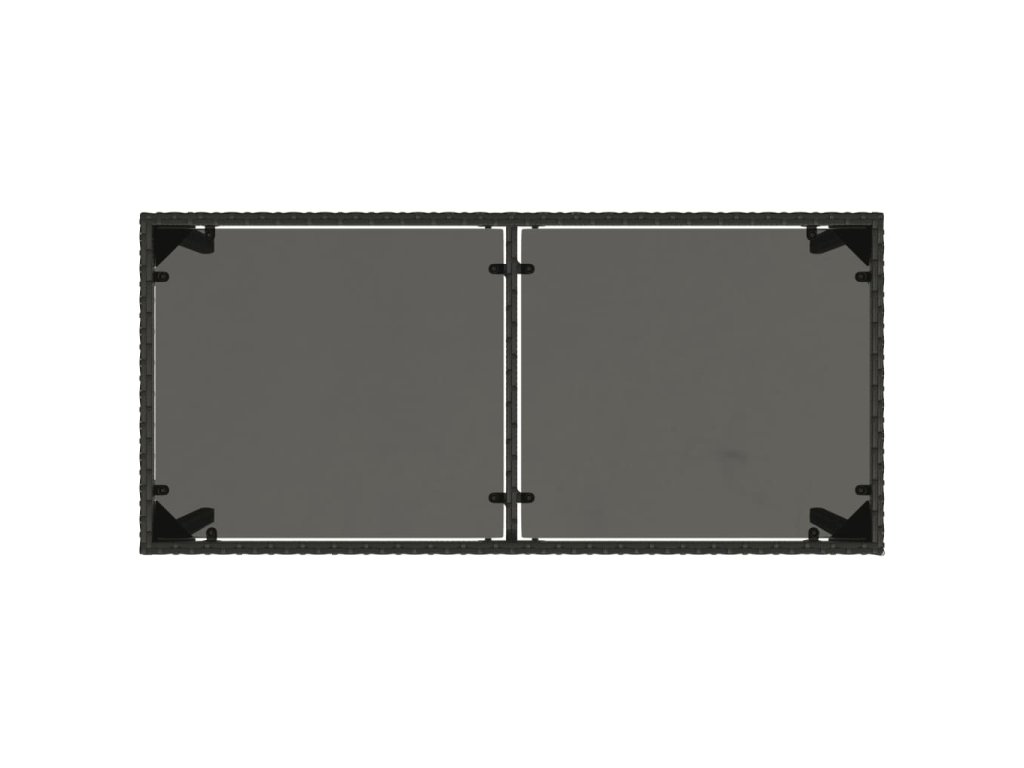 - Materiál: PE ratan, práškově lakovaná ocel, tvrzené sklo