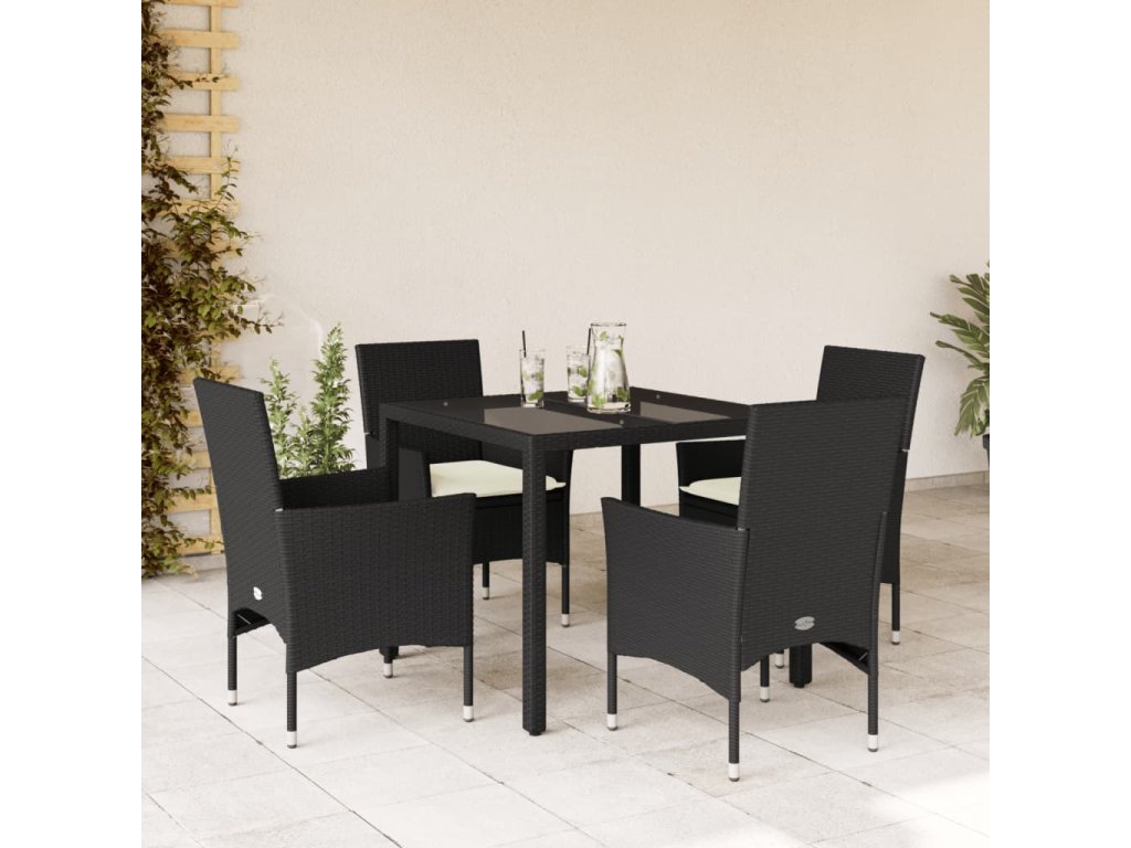 5dílný zahradní jídelní set s poduškami černý polyratan a sklo 3278538