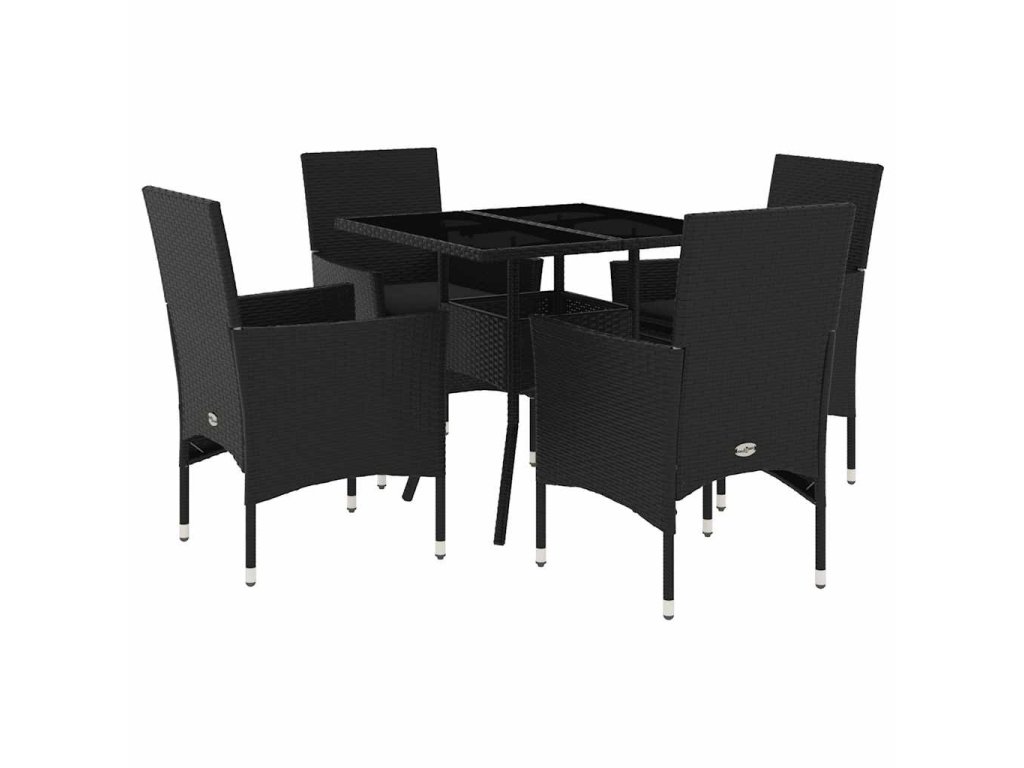 5dílný zahradní jídelní set s poduškami černý polyratan a sklo 3278602
