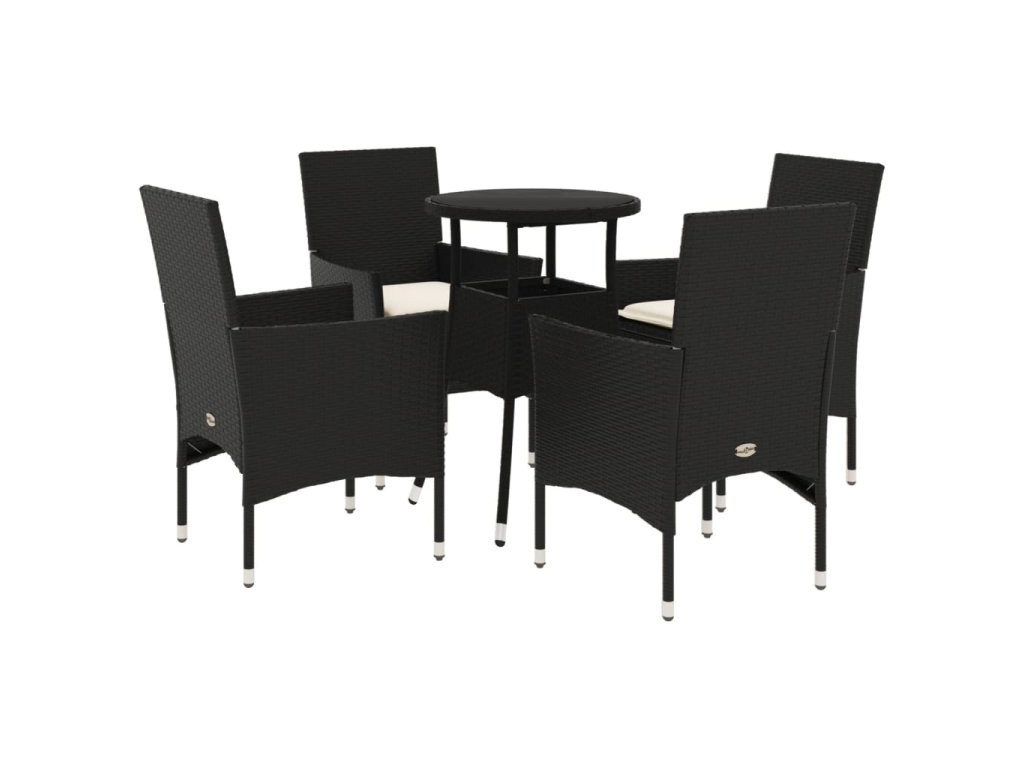 5dílný zahradní jídelní set s poduškami černý polyratan a sklo 3278616
