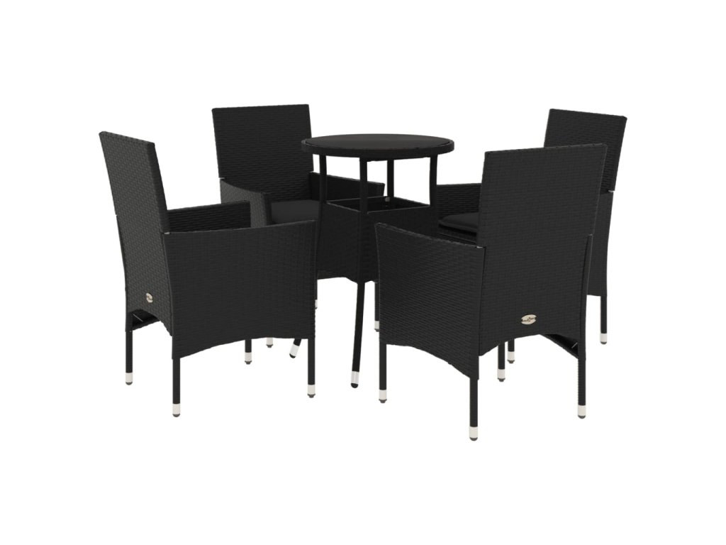 5dílný zahradní jídelní set s poduškami černý polyratan a sklo 3278618