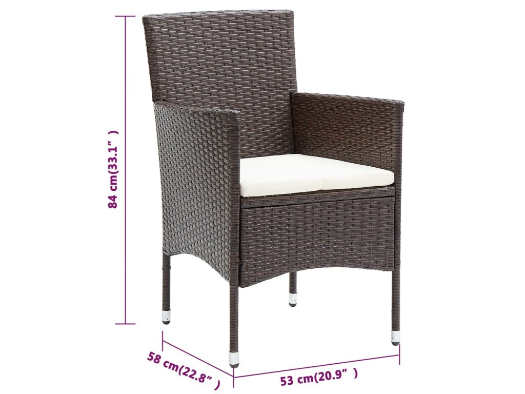 - Vysoce kvalitní židle: Tyto zahradní židle jsou vhodné pro venkovní použití: robustní ocelový rám je obalený ručně tkaným PE ratanem odolným proti povětrnostním vlivům.