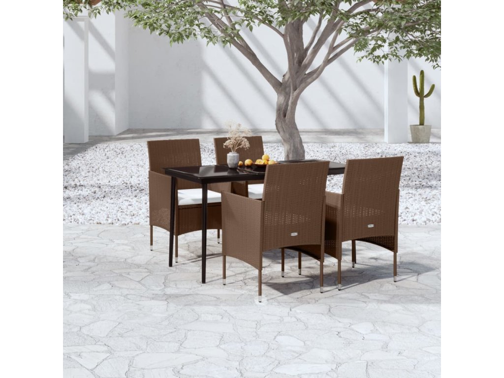 5dílný zahradní jídelní set s poduškami hnědý a černý 3099325