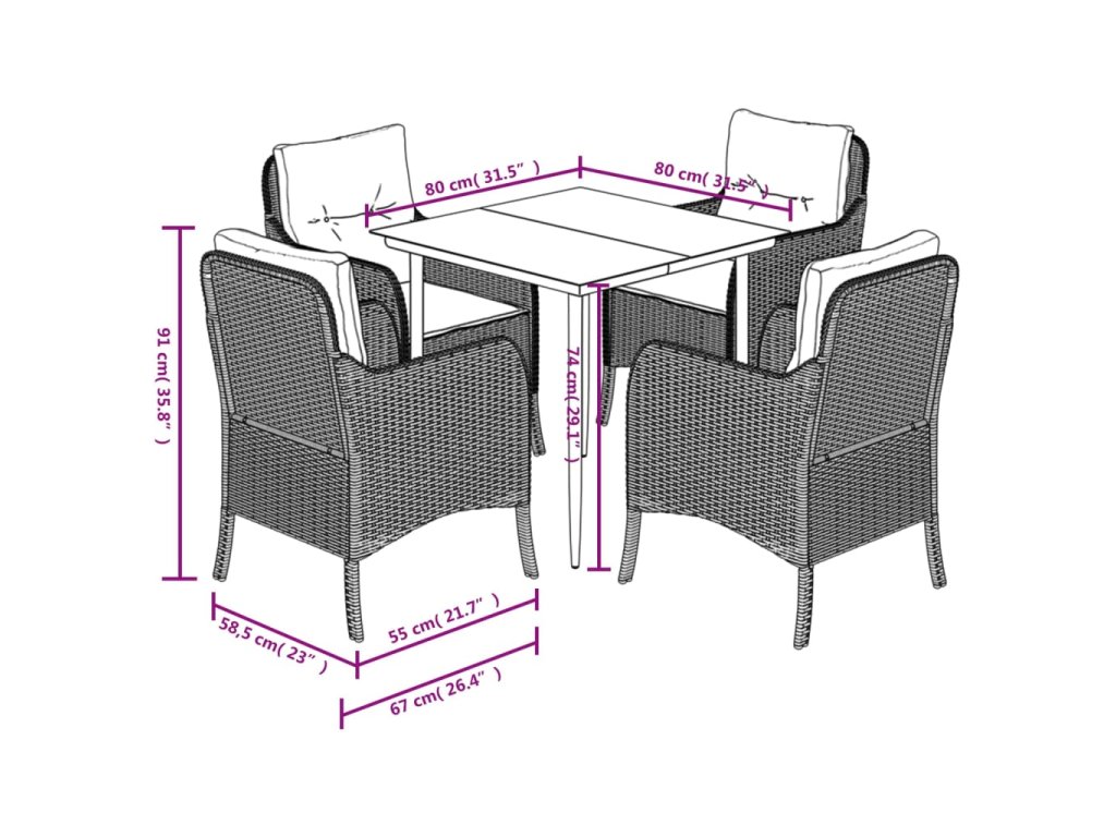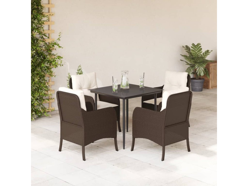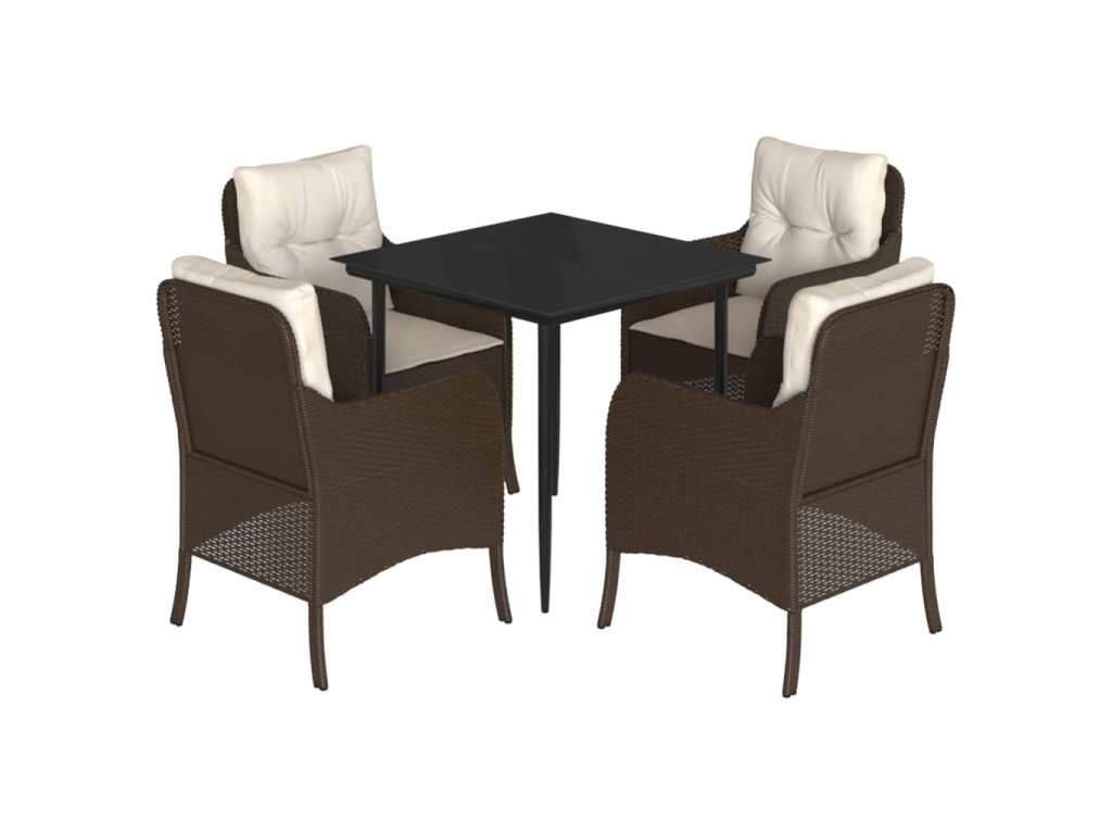 5dílný zahradní jídelní set s poduškami hnědý polyratan 3211935