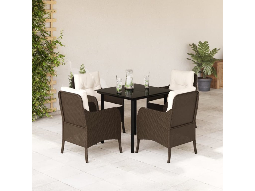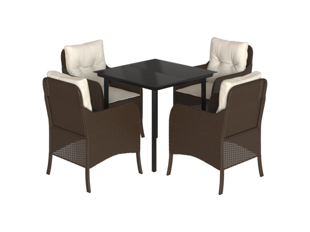 5dílný zahradní jídelní set s poduškami hnědý polyratan 3211942