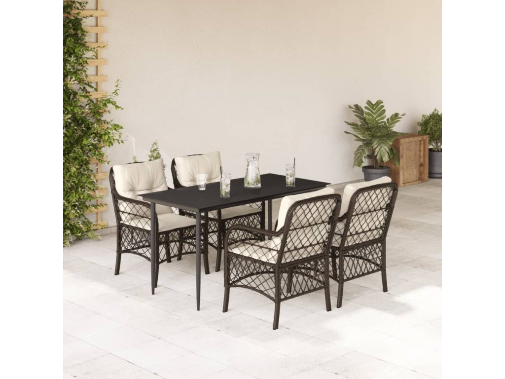 5dílný zahradní jídelní set s poduškami hnědý polyratan 3212112