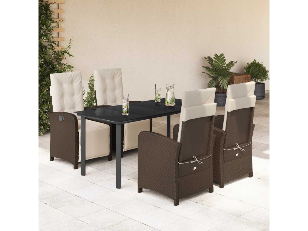 5dílný zahradní jídelní set s poduškami hnědý polyratan 3212552