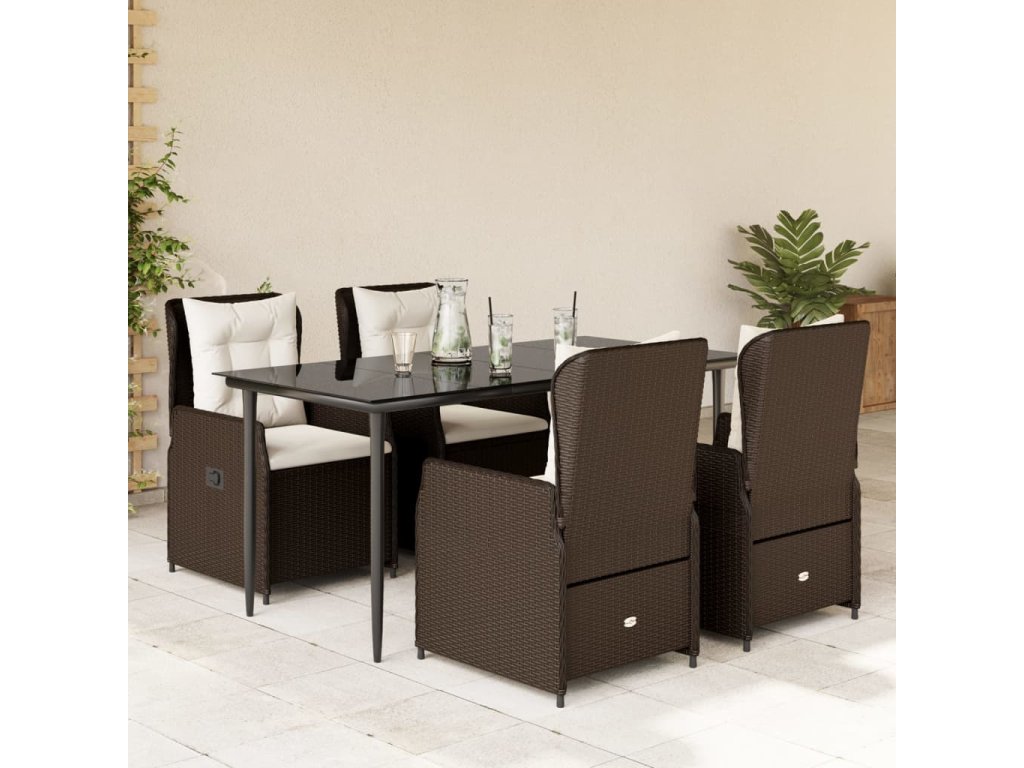 5dílný zahradní jídelní set s poduškami hnědý polyratan 3262843