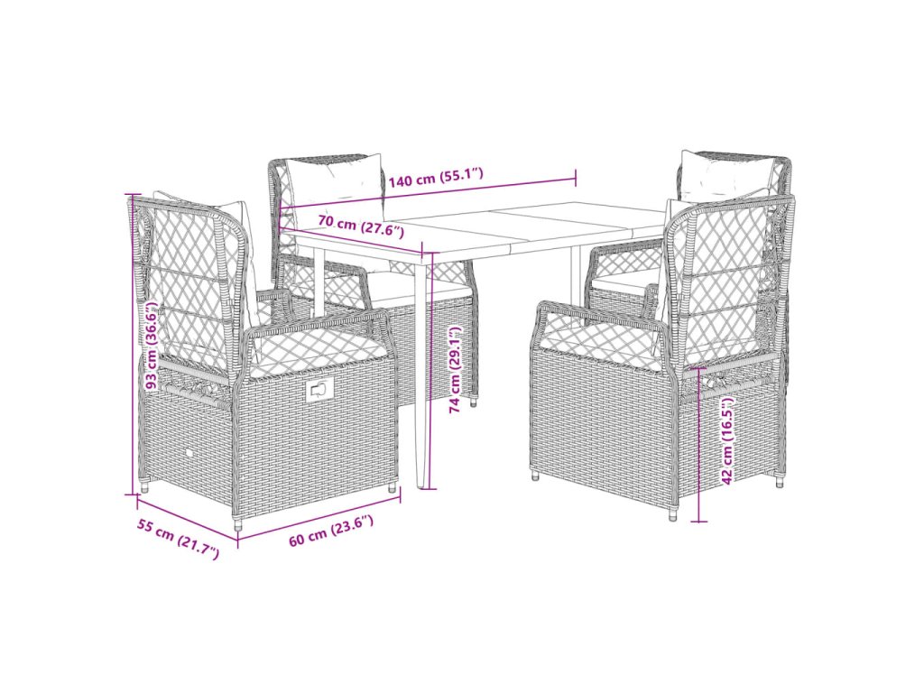 Tento zahradní jídelní set je skvělou volbou pro stolování pod širým nebem nebo jen tak pro odpočívání na zahradě, dvorku či terase.