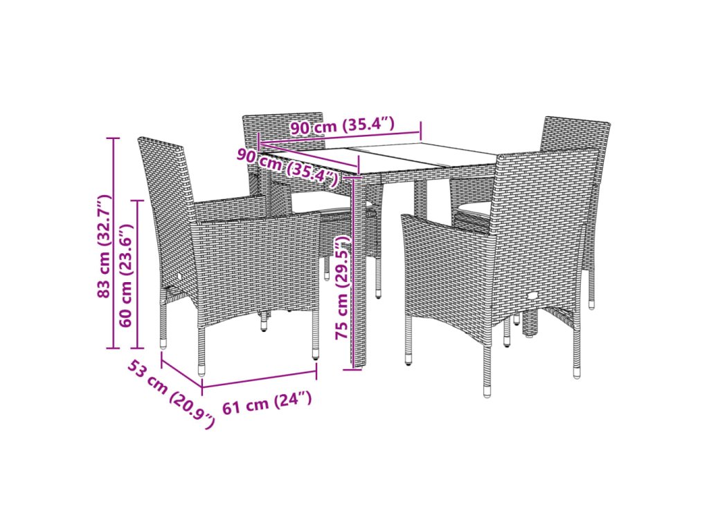 - Rozměry: 90 x 90 x 75 cm (Š x H x V)