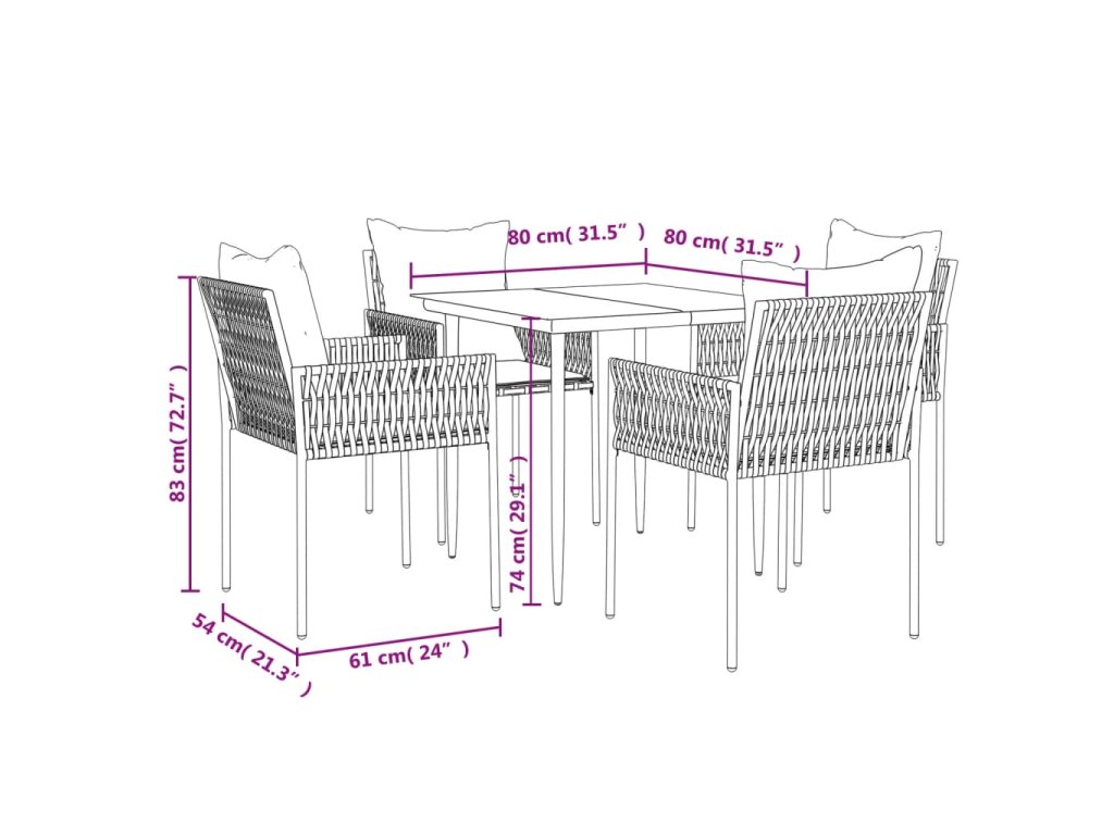 5dílný zahradní jídelní set s poduškami polyratan a ocel 3187050