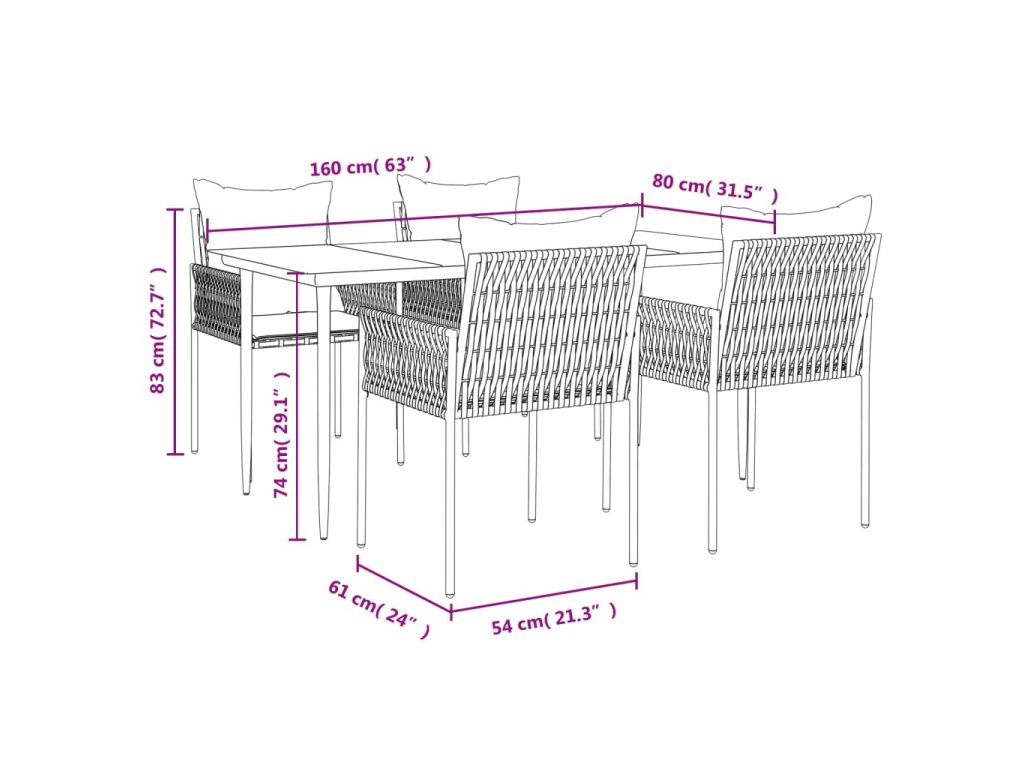 5dílný zahradní jídelní set s poduškami polyratan a ocel 3187057