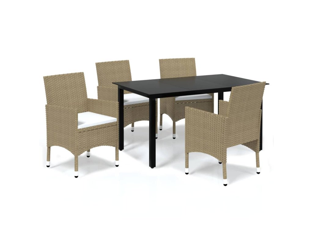 5dílný zahradní jídelní set s poduškami polyratan béžový 3094987