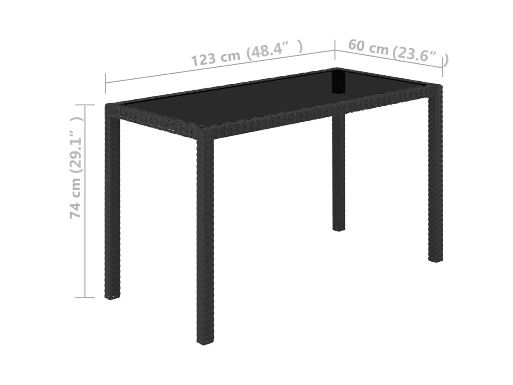 Tento ratanový jídelní set v elegantním současném designu bude skvělou volbou pro stolování na čerstvém vzduchu nebo relaxaci na zahradě. Ocelové rámy s práškovým nástřikem dodávají stolu i židlím pevnost a robustnost a díky lehké konstrukci se dají všechny kusy snadno přesouvat. Protože je vyroben z PE ratanu, odolného vůči vodě a povětrnostním vlivům, dá se jídelní set snadno čistit. Skleněná stolní deska se dá rovněž snadno čistit otřením vlhkým hadříkem.