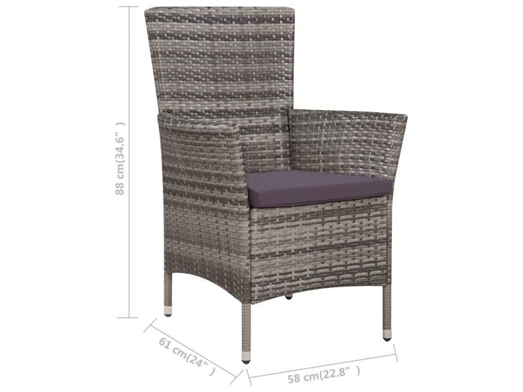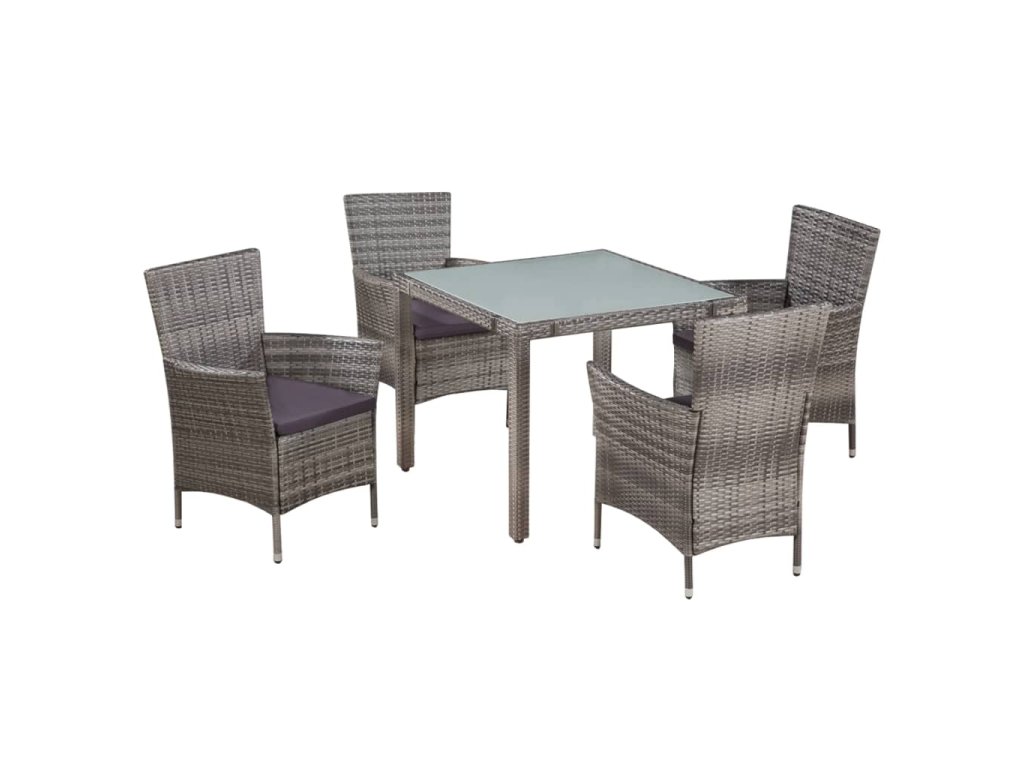 5dílný zahradní jídelní set s poduškami polyratan šedý 44072