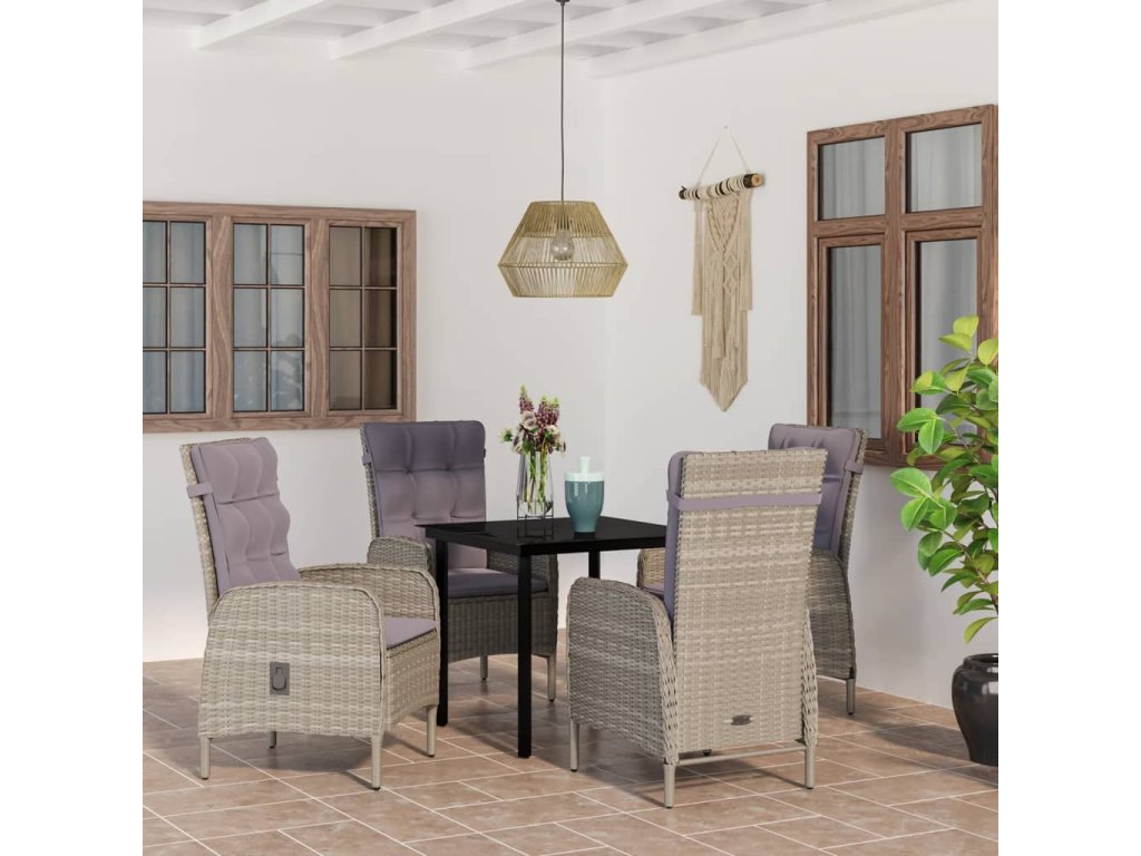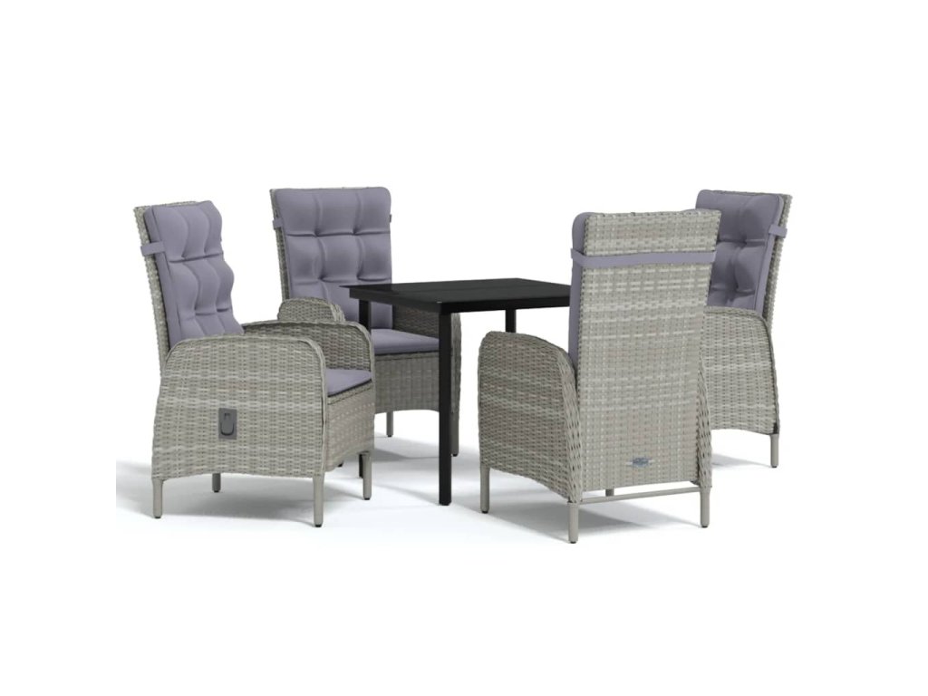 5dílný zahradní jídelní set s poduškami šedý a černý 3099360
