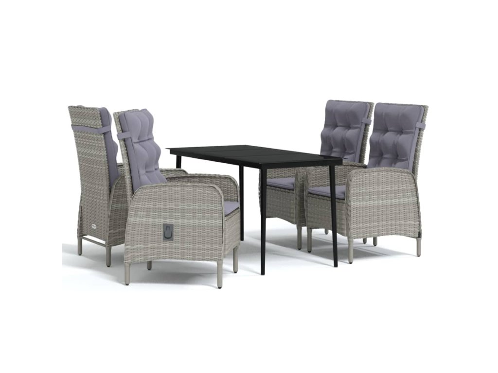 5dílný zahradní jídelní set s poduškami šedý a černý 3099373