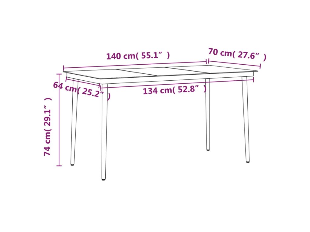 - Rozměry stolu: 140 x 70 x 74 cm (D x Š x V)