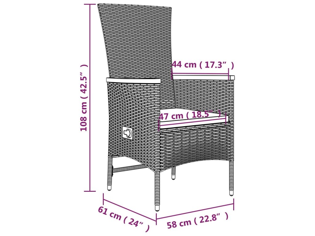 - Rozměry sezení: 58 x 61 x 108 cm (Š x H x V)