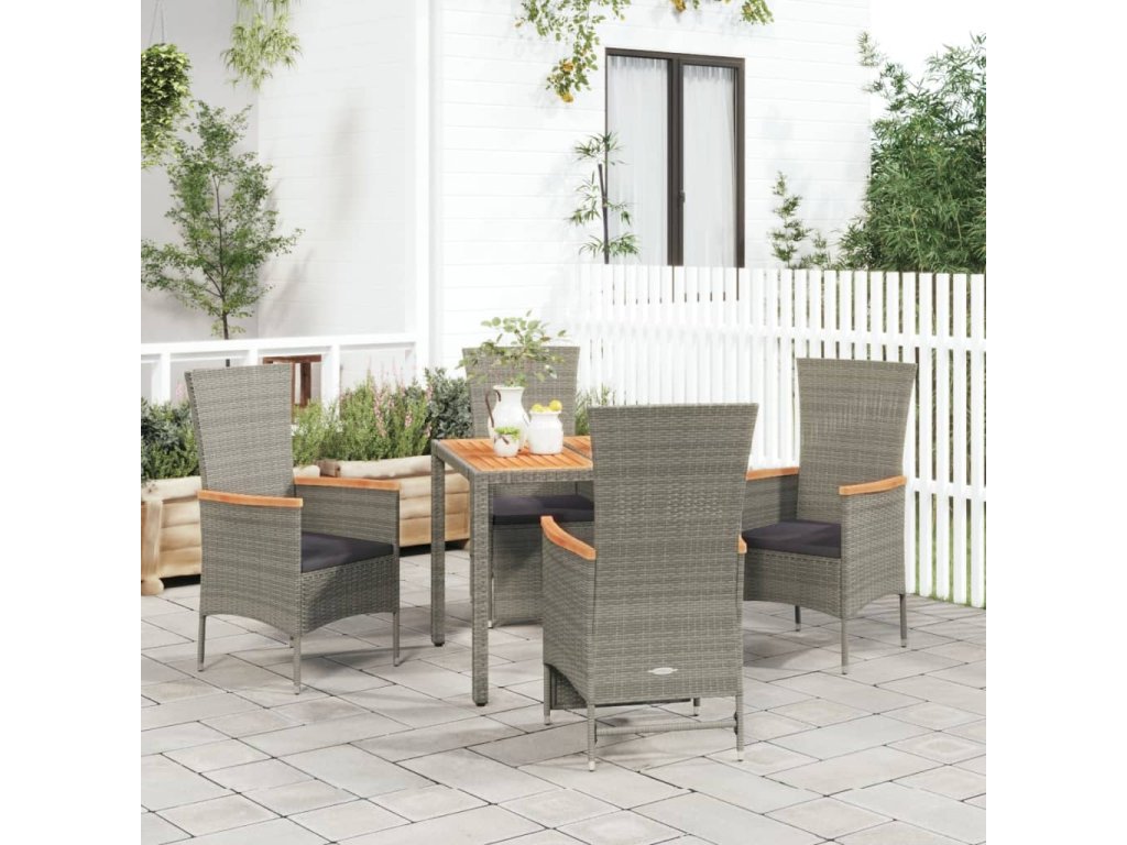 5dílný zahradní jídelní set s poduškami šedý polyratan 3157537