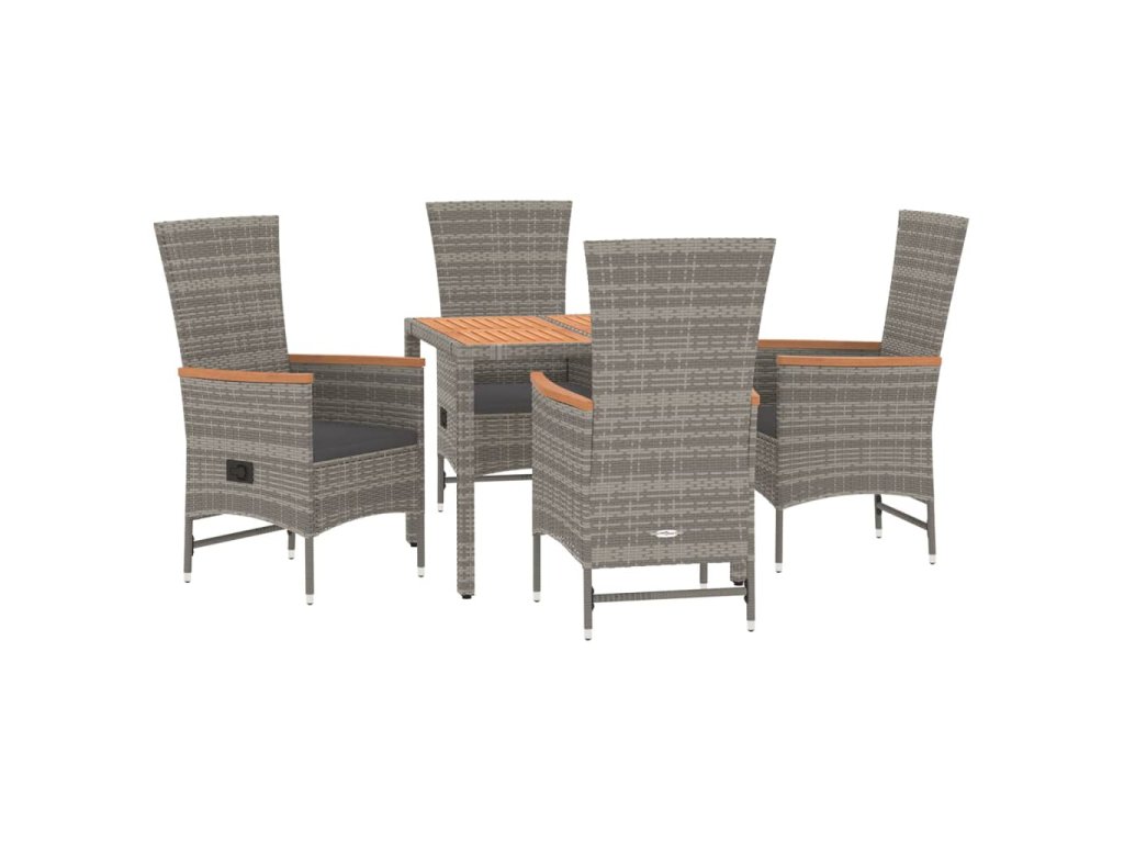 5dílný zahradní jídelní set s poduškami šedý polyratan 3157547