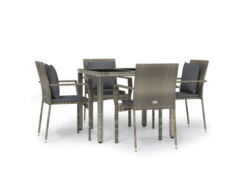 5dílný zahradní jídelní set s poduškami šedý polyratan 3157958