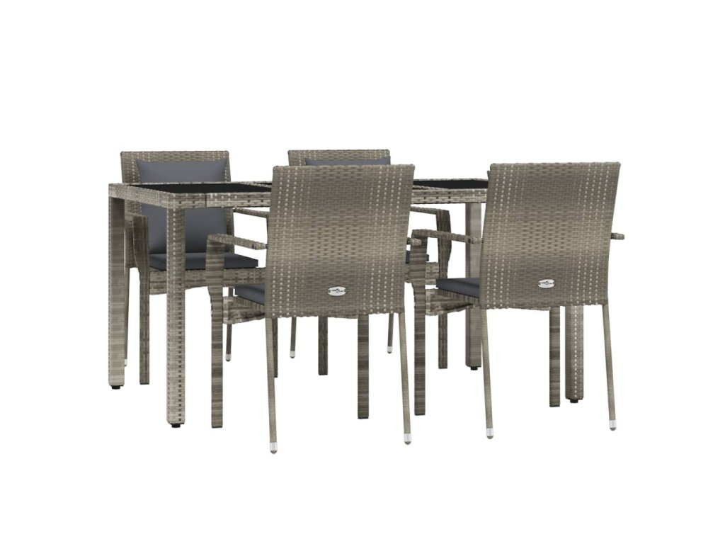 5dílný zahradní jídelní set s poduškami šedý polyratan 3157959