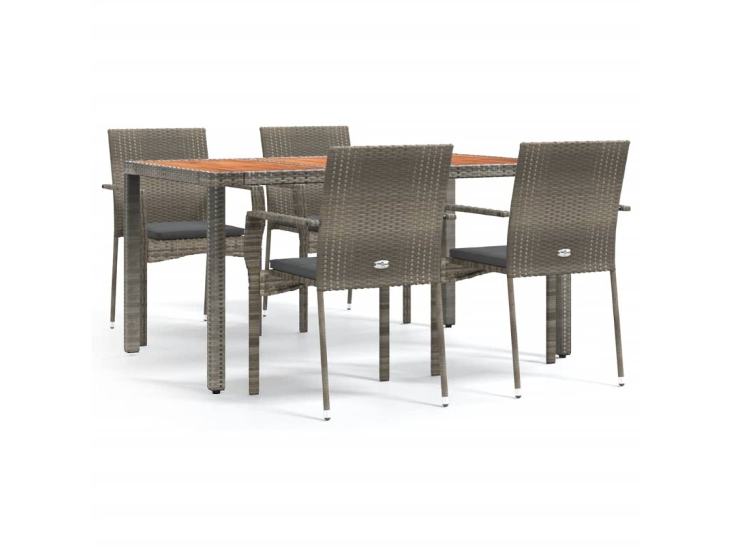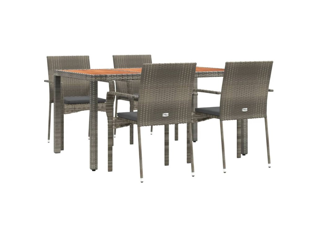 5dílný zahradní jídelní set s poduškami šedý polyratan 3184995